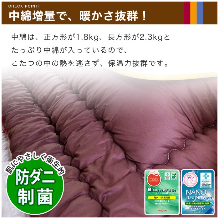 원본상품명: 日本製超?量!あたたか コタツ掛け布? 正方形 ふっくら柔らかいリバ?シブルカラ? こたつ布? 185×185cm保?力?群あったか 保? 炬? 防ダニ ニオイ?策 制菌 抗菌防臭SEK認??潔マイティ?トップ帝人テイジン?産