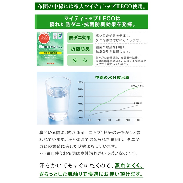 중면-안솜:마이 T 톱2ECO사용 【항균 방취】【흡땀】【방다《니》】【탄력성】 【자랑(먼지)가 출어려운】(중공 폴리에스텔100%)