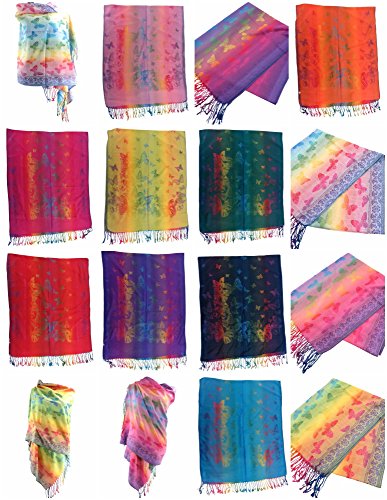 (WholesaleSarong)/Accessories/Cold Weather Accessories/DIRECT FROM USA/12 scarves butterflies mandala rainbow pashmina shawl wrap stole Wholesale Jacquard woven shawl
