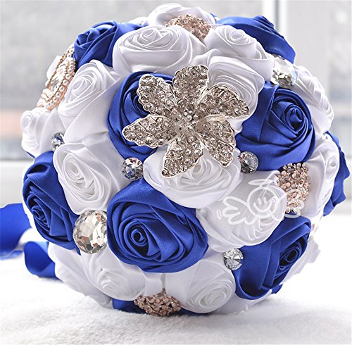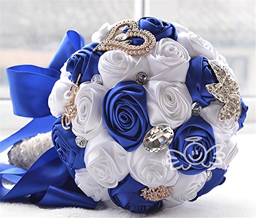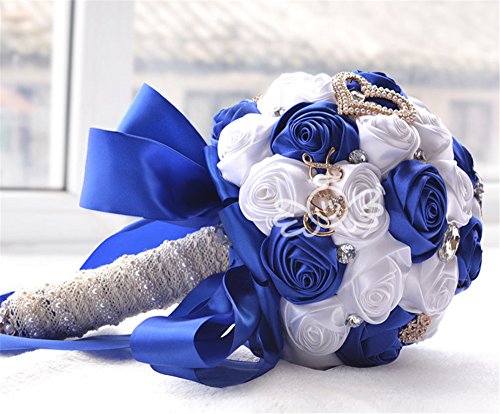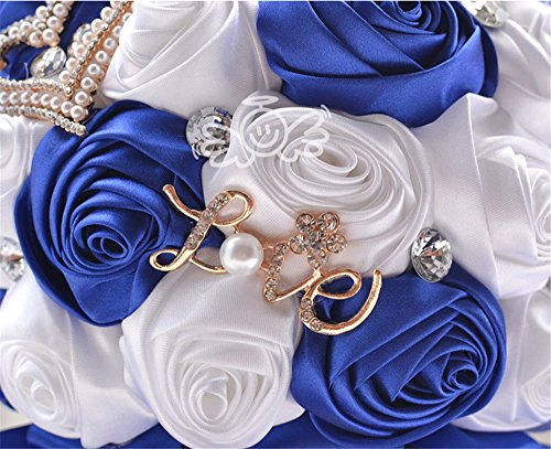 FASHION DESIGN - Made by hand craft. The delicate handle is wrapped in satin ribbon which is covered lace. The roses are decorated with rhinestone. They make the bouquet more beautiful.