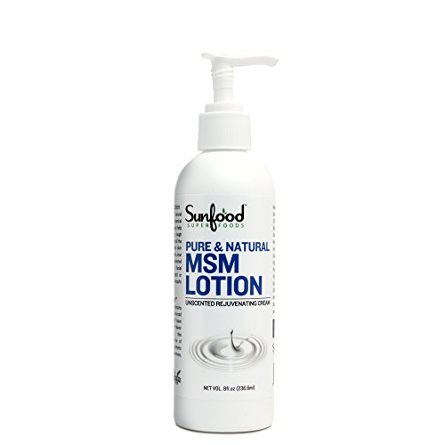 Pure & Natural MSM Lotion Enriched with 10% OptiMSM, natural vitamins & organic botanical ingredients, our MSM lotion can help restore & rejuvenate dry, rough skin. This pure cream delivers all the value of MSM directly to the skin surface to address inflammation, scar tissue & wrinkles. This unscented formula works well as a facial moisturizer. Apply to damaged/irritated skin, sunburns, or mosquito bites. Excellent for shaving! The Sunfood DifferenceTM Our MSM lotion contains only organic & sustainably sourced ingredients that leave your skin soft & smooth. Never tested on animals, this hypoallergenic product is free of alcohol, synthetic chemicals, artificial preservatives, solvents, methylalcohol & parabens.Feature