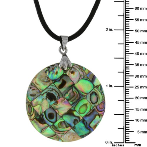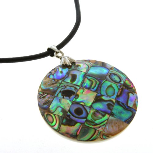 - Title : 36mm Abalone Paua Shell Inlay Circular Pendant with 16" Leather Cord Necklace