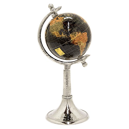 Product Description This Three Hands globe with contemporary styled stand is the perfect way to accent any desk or bookshelf. This handsome globe features a black background and natural tone landmasses. The polished silver stand lets you spin the globe to any destination. 0