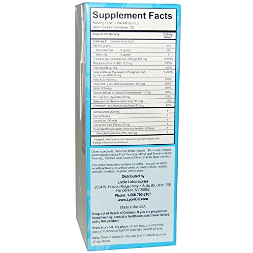 Studio : LypriCel Publisher : LypriCel Binding : Health and Beauty Product Description LypriCel B Complex Plus, Why You Need It... The unique combination of superior nutrients and our Liposomal Delivery System makes LypriCel B Complex Plus the most comprehensive and powerful supplement of its kind. Each packet of LypriCel B Complex Plus delivers high quality, active forms of eight different B Vitamins, along with a special blend of trace minerals and cinnamon extract. LypriCel B Complex Plus: Blocks the formation of Advanced Glycation End-Products (AGE) Unleashes more energy naturally, without any crash Supports healthy blood sugar levels Supports weight-loss Liposomal Delivery System Traditional supplements can be destroyed in the digestive system and flushed from the body without providing benefit. LypriCel uses liposomes made from Essential Phospholipids to protect the active nutrients from destruction. Our nutrient-filled liposomes bypass absorption barriers in the digestive system, entering the bloodstream and cells - intact and ready to work. 0
