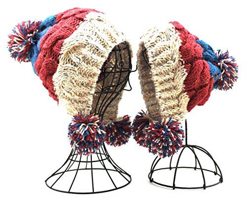 -. Feature : 全国送料無料!手編みニット帽ペアセット販売!(2個の価格です) / 3色のミックス毛糸を使いボーダーをケーブルに編み込みました!頭上には大きいボンボン☆シロコ下に小さ目なボンボンがとっても可愛い◎ / 耳あて(シロコ部分)があごまで暖かにしてくれます!ママとお揃い or パパとお揃い、姉妹や兄弟でお揃い楽しくペアルック♪ / 大きい方:頭サイズ52cm~58cmくらいまで / 高さ39c(ボンボン含)  素材:アクリル / 小さい方:頭サイズ46cm~52cmくらいまで / 高さ34cm(ボンボン含)