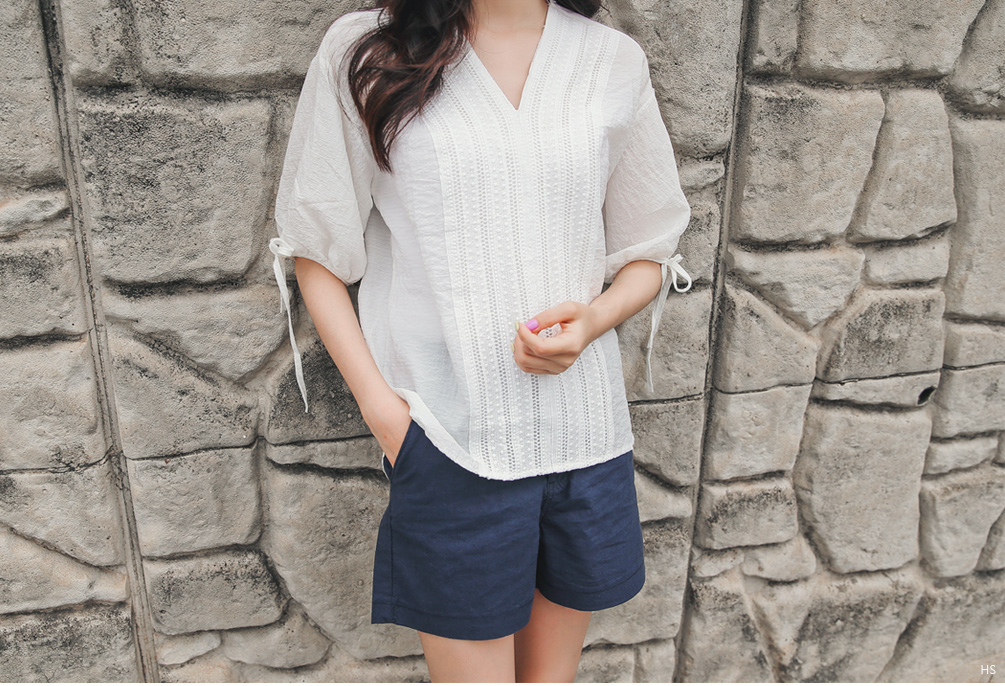 브이네크라인으로 여성스러움까지