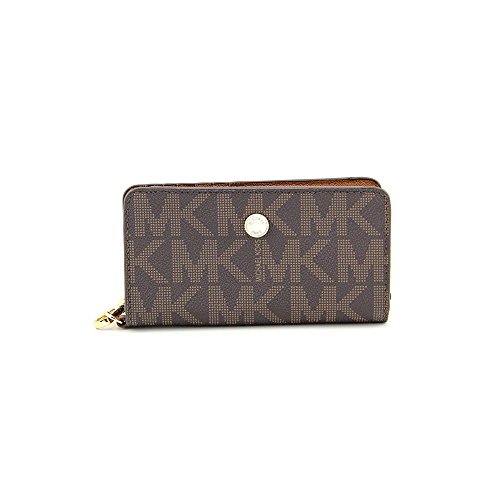 -. Title : MK Signature Saffiano Slim Tech Wristlet Brown/Lage