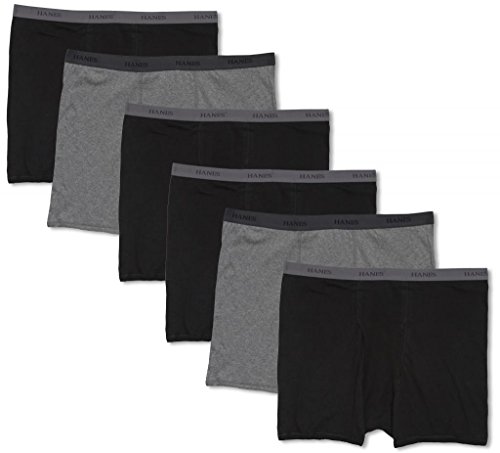 -. Feature : Hanes Classic Big Men's Underwear - BOXER BRIEFS. Quantity: 6 / Prepack of 6 underwear: 4 Black, 2 Heather Gray / 100% Cotton; Tagless / Waist Measurements: 3XL - 48-50", 4XL - 52-54", 5XL - 56-58", 6XL - 60-62", 7XL - 64-66" / Total Length: 3XL: 16", 4XL, 5XL: 17", 6XL, 7XL: 18"