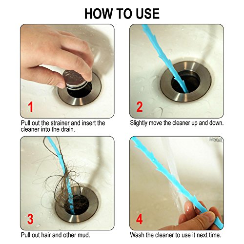 BEST HAIR REMOVER TOOL : Simply insert drain clog remover thru most drain and strainers as it grabs obstructions at P-trap or strainers and pipes, were most clogs occur or hook the hair.