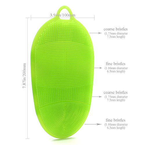 2980 two different diameter types silicone bristles, 360 degrees clean, massage the skin,relieve stress,perfect to relax muscles,exfoliating, balance oil,promote blood circulation as well as increase the elasticity of your skin,brighten the skin color. Enhance your happiness of bathing