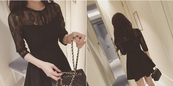 フェミニン胸開き レース切替 ミニワンピース ブラック/L
