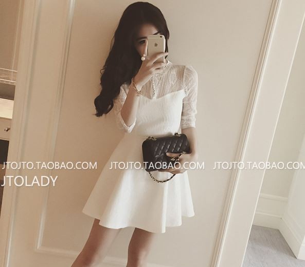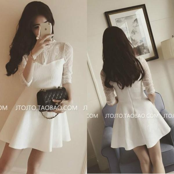 ☆さりげないレース使いが軽やかな印象に見せてくれるミニワンピースです☆