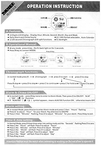 -. Feature : Sold and Ships by Bo Yi Watches / Good Quality, Nice Gift for Children / Functions: Analog-Digital display, date/week/month, Alarm, waterproof, EL backligt, 1/100 second chronograph with split functions, daily alarm and chime hourly / Attention: You can wear the watch when swimming or washing car, but do not operate it under the water! / Any question ,pls feel free to contact us
