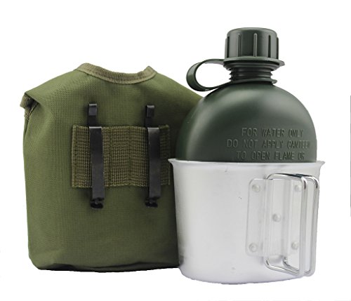 Folding handle makes the cup perfect for separate use. Storage Pocket on Canteen Cover. Includes belt hooks. Holds 1 quart