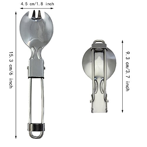Portable and foldable stainless steel Spork Dinner Tableware. A spoonful of dual-use, that can be when the spoon, but also when the fork, the use of more convenient. Folding function, with a lock design, just a push, handle and spoon the perfect combination