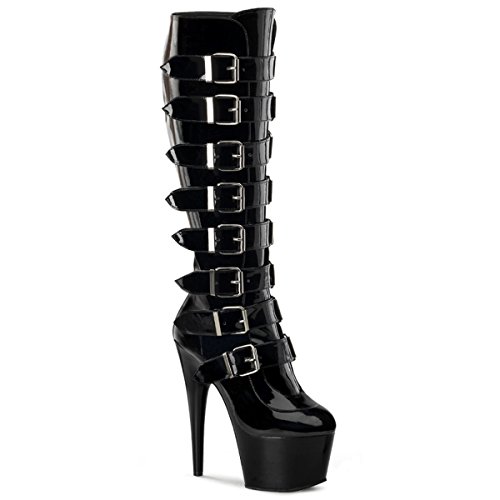 Product DescriptionHeel Height: Approx. 7' Tall. The Adore-2043 platform knee-high boot by Pleaser features a black patent buckled upper, round toe., side zipper for easy on/off.0