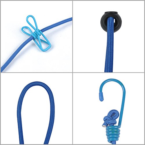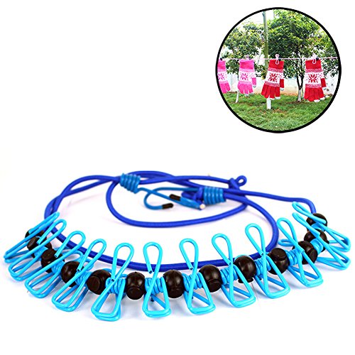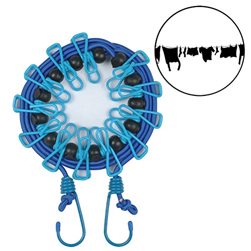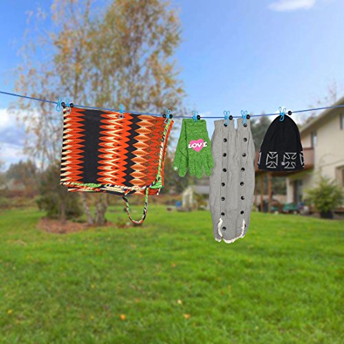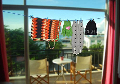 Travel Clothesline Rope Volla Outdoor Clothesline Windproof Adjustable with 12pcs Clothespin and Hook End(Dark and Light Blue)