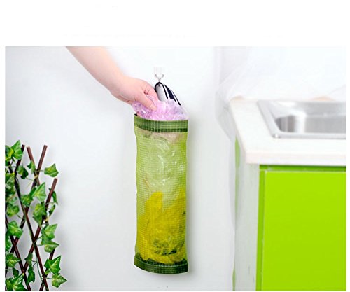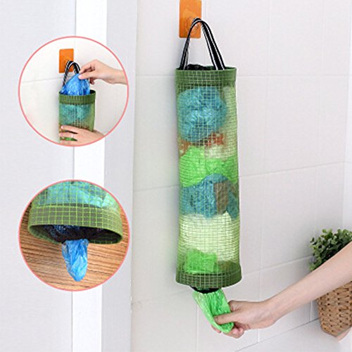 jenifer2015 Hanging Folding Mesh Garbage Bag Organizer Trash Bags Holder Recycling Containers Plastic Waste Bag Storage for Kitchen (Green)