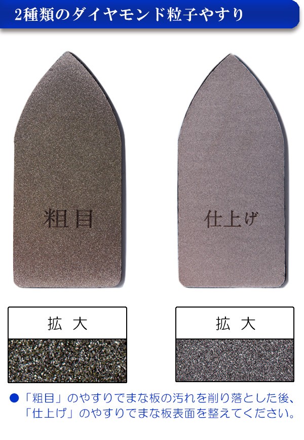 | <h1>粗さの違う2種類のダイヤモンド粒子のやすりでまな板汚れを落としましょう!粗い方でまな板の汚れや傷を削り、細かい方でつるつるに仕上げます。持ち手は手にフィットする持ちやすい立体形状!やすり部分はマジックテープで付け替え可能になっています。まな板けずり/まな板削り/ダイヤモンド/砥石/キッチン/まな板/まないた</h1> |