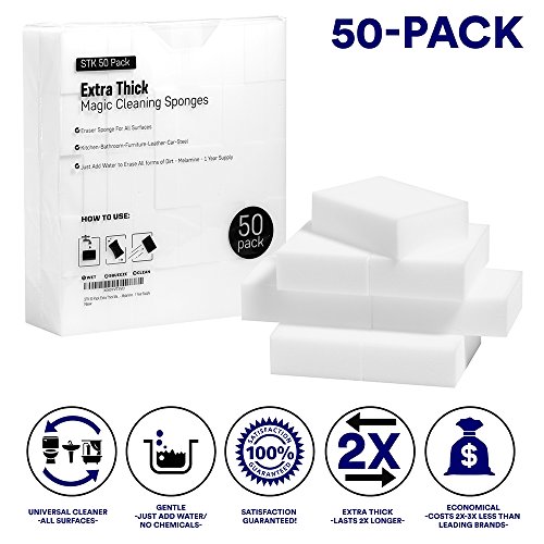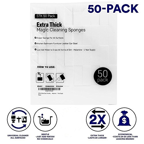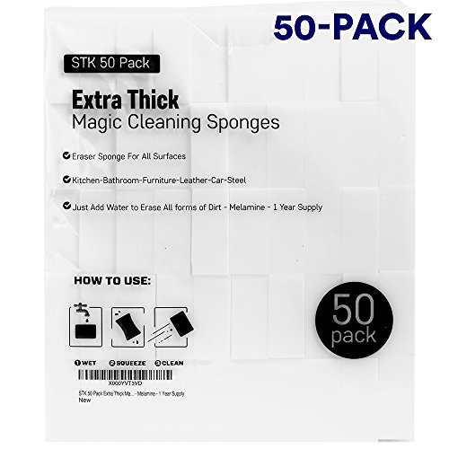 STK 50 Pack Extra Thick Magic Cleaning Sponges - Eraser Sponge For All Surfaces - Kitchen-Bathroom-Furniture-Leather-Car-Steel - Just Add Water to Erase...