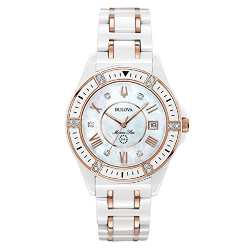 Bulova Women's Marine Star White Ceramic Rose Goldtone Accents Bracelet Watch