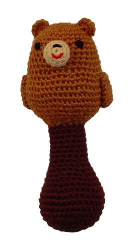 Each rattle is hand crocheted by a single artisan using the techniques of the art of Amigurumi (ah-mee-goo-roo-mee)
