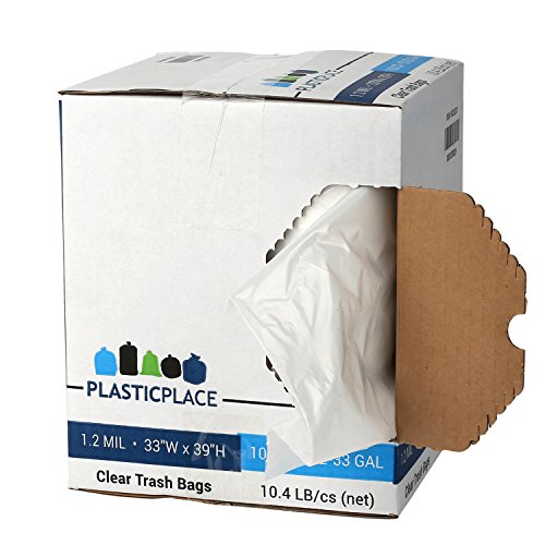 Plasticplace Clear Trash Bags, 33 Gallon, 33 x 39 100/case 1.2 Mil - EASY OPEN FLAP FOR YOUR CONVENIENCE