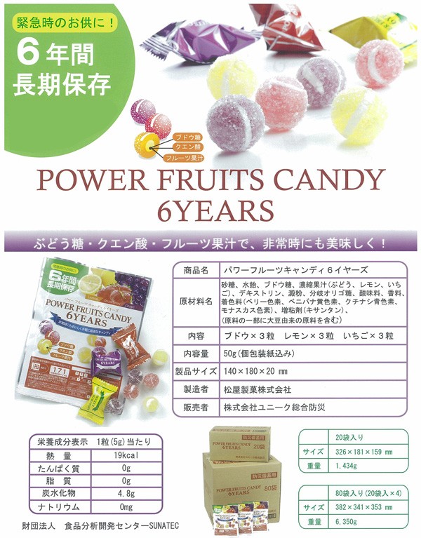 【商品名】緊急時のお共に! パワーフルーツキャンディ 6YEARS (1箱20袋入)