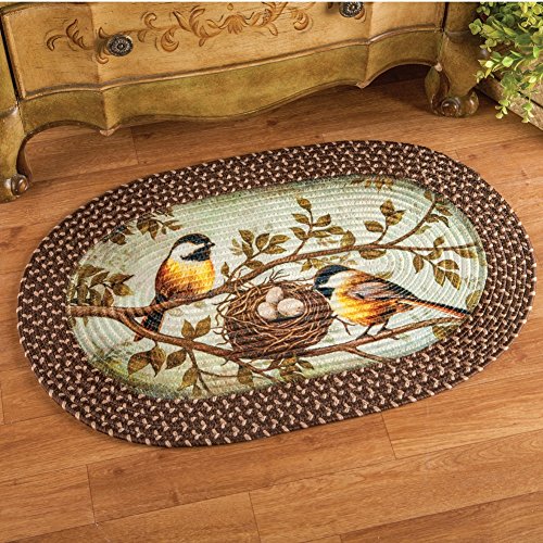 Studio : Collections Etc Publisher : Collections Etc Product Description Nesting Chickadee Birds Braided Accent Rug, 19 1/2"W X 30"L Description Rich colors and a charming design make this braided rug the perfect addition to your home. It features charming chickadees tending their nest in the center of a brown and white braided border. Spot clean. Polyester and polypropylene; imported. 19 1/2"W x 30"L. Material Type: Polyester About Collections Etc's Accent / Area Rugs Our wide selection of floor mats includes great options for the whole house. From indoors to outdoors, our collection includes braided mats, cushion mats, coir bristle mats, hooked mats, and more! Our cushion and braided floor mats are perfect for the kitchen or laundry room. They offer comfort for your feet while cooking, washing dishes, or doing laundry. And with our wide variety of colors and designs, you're sure to find one that would look great with your decor.