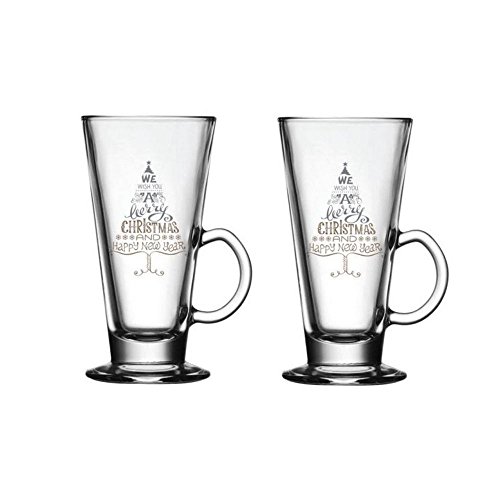 Set of 2 fun and festive latte glasses in a traditional style latte glass featuring a festive Christmas tree design. Perfect for gingerbread lattes or a posh hot chocolates Would also make a great gift for any coffee lover D:3" (at top) x H:6" | Capacity: 8.5fl oz 0 |
