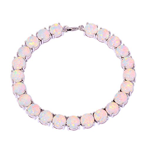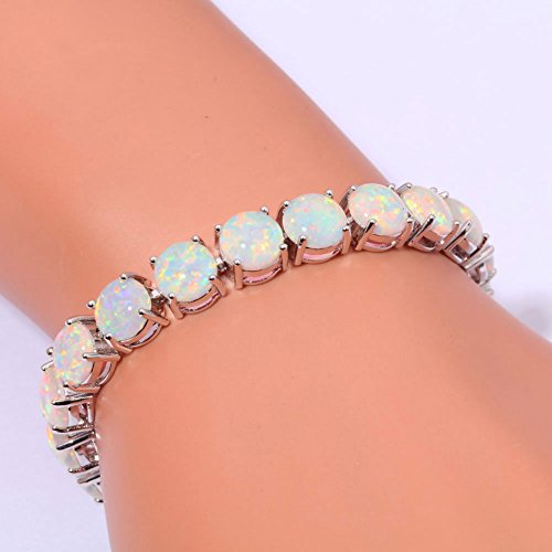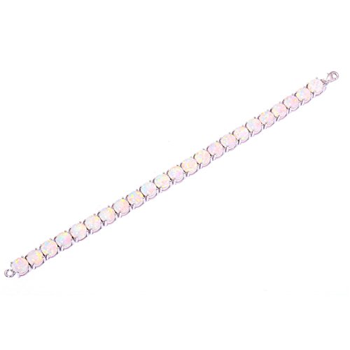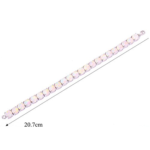 This bracelet is inlaid with created white fire opal for a unique look. The Good Quality bracelet has a high polish finish, the bracelet lengty is 20.7cm , width is 0.8cm , the bracelet stone size is 8mmx23pcs , the total weight is 17.92g