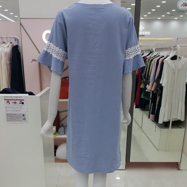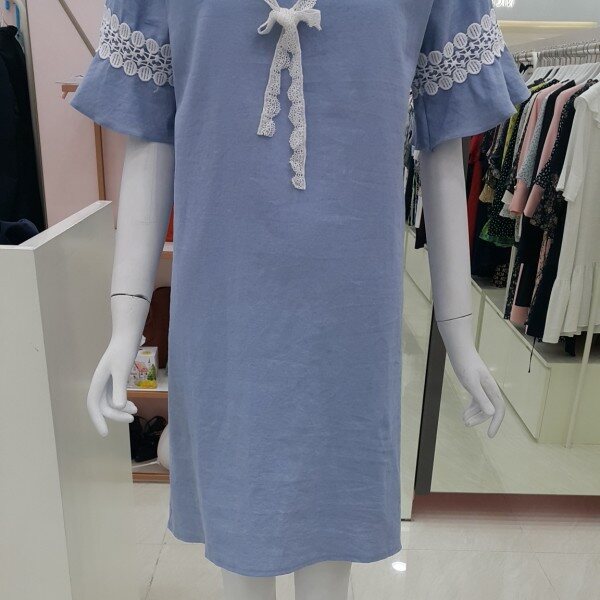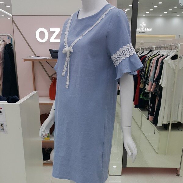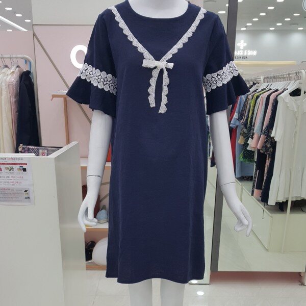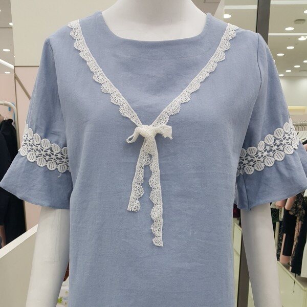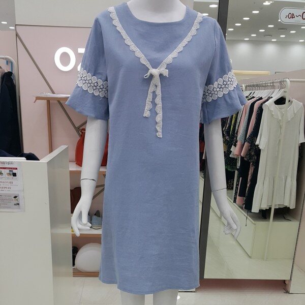 면마혼방소재로 시원해요일자핏에 레이스 트리밍으로 포인트를 주었어요가슴에 레이스로 리본을 묶어 프리티함을 표현 할 수 있네요어깨37가슴둘레 98총길이89