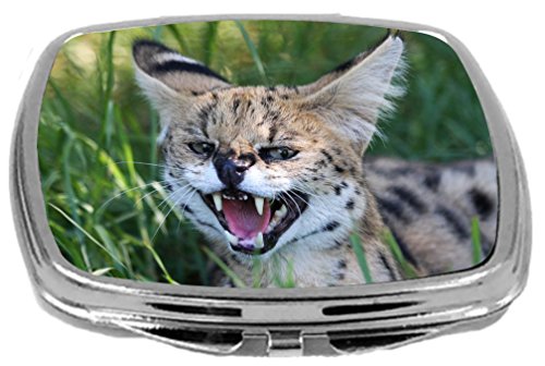 Rikki Knight Snarling Serval Wild Cat with Large Teeth and Pink Tongue Design Compact Mirror, 17 Ounce