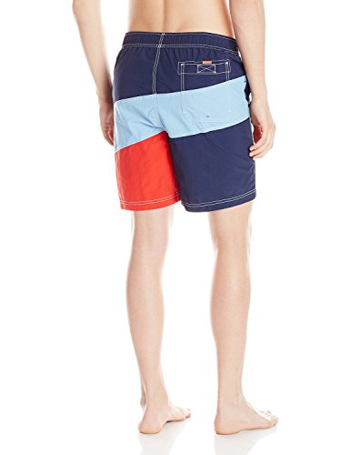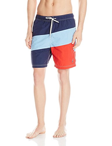Binding : Misc. Product Description Hit the beach in style in these striking Nautica® swim trunks. Quick-drying fabric will keep you comfortable in and out of the water. Trunk sports a color blocked design throughout. Measurements: Waist Measurement: 32 in Outseam: 18 in Inseam: 7 in Front Rise: 12 in Back Rise: 18 in Leg Opening: 24 in 0