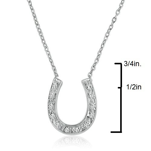 -. Binding : Jewelry -. Brand : Amanda Rose Collection -. Department : women -. Feature : 16" Sterling Silver Chain / Sterling Silver Horseshoe Setting / Gift Box Ready / All of our diamond suppliers and MLG state that to the best or their/our knowledge that all of our diamonds are conflict free. -. Label : Amanda Rose Collection -. Manufacturer : Amanda Rose Collection -. Model : GJP1907-SHOE -. MPN : GJP1907-SHOE -. PackageQuantity : 1 -. PartNumber : GJP1907-SHOE -. ProductGroup : Jewelry -. ProductTypeName : FINENECKLACEBRACELETANKLET -. Publisher : Amanda Rose Collection -. Studio : Amanda Rose Collection -. Title : Sterling Silver and Diamond Horseshoe Necklace (1/8cttw. 16 inches)