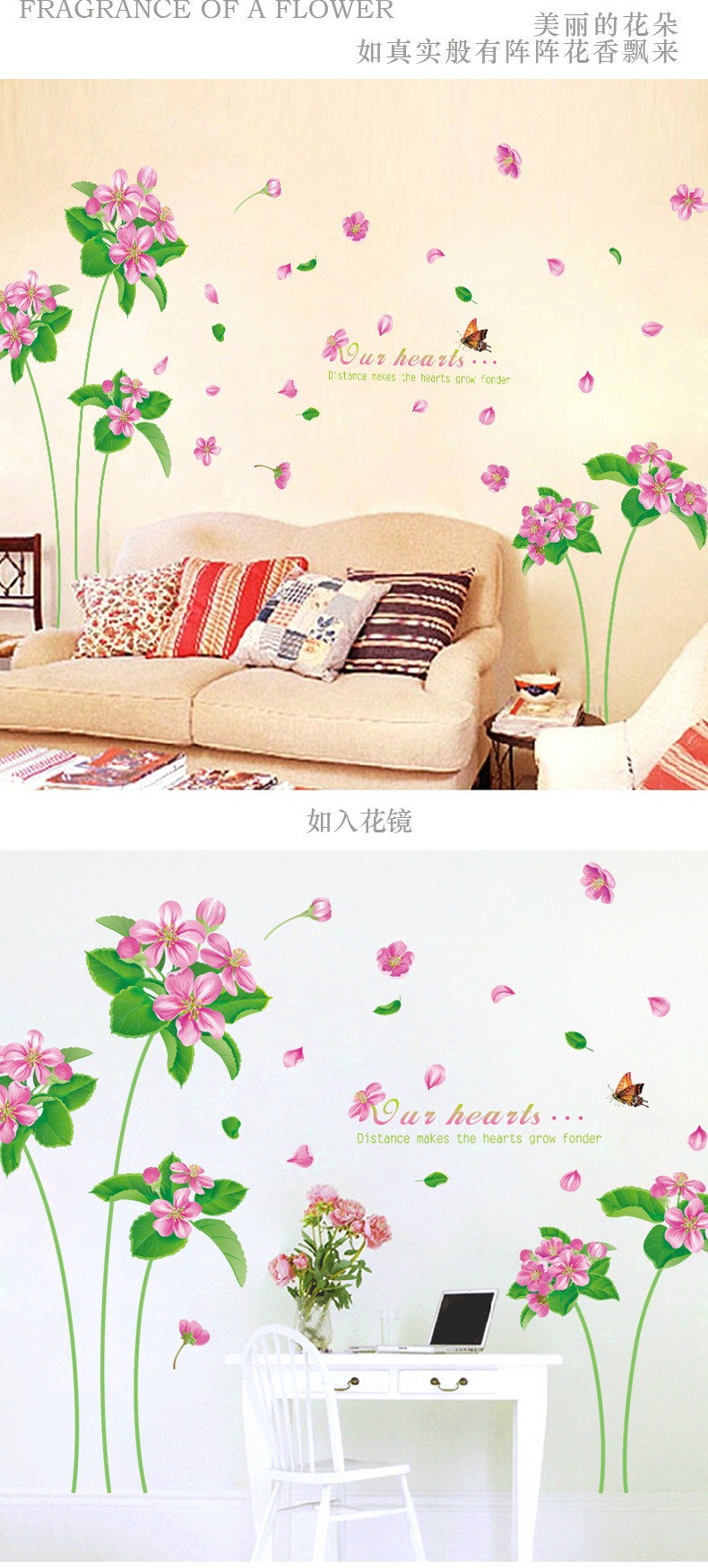 墙贴可移除客厅电视墙沙发背景墙装饰贴纸卧室浪漫花朵绿叶墙贴画