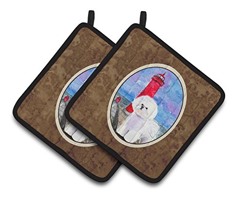 Caroline's Treasures Lighthouse with Bichon Frise Pair of Pot Holders SS8891PTHD, 7.5HX7.5W, Multicolor