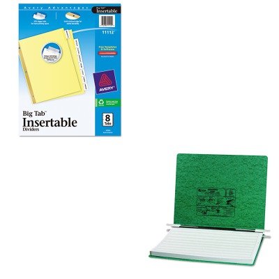 Studio : Acco Publisher : Acco Binding : Office Product Product Description lt;stronggt;ACC54076lt;/stronggt;lt;BR/gt;Acco Pressboard Hanging Data Binderlt;BR/gt;Top and bottom loading binder expandable for various sized projects. Retractable storage hooks for single point or drop file hanging systems. Adjustable flexible nylon posts allow maximum capacity with minimum storage space. Embossed acrylic-coated pressboard cover resists moisture and scuff marks. Designed for use with sheets that are still attached in continuous form with accordion fold. Capacity Range Min: 1amp;quot; Capacity Range Max: 6amp;quot; Colors: Dark Green Binder Sheet Size: 14 7/8 x 11.lt;BR/gt;lt;BR/gt;lt;stronggt;AVE11112lt;/stronggt;lt;BR/gt;Acco Pressboard Hanging Data Binderlt;BR/gt;50% more printing space for tab titles than traditional tab dividers. Special tab design allows easy insertion and removal, but keeps insert securely in place. Three-hole punched for use in standard ring binders. Laser and inkjet printer compatible. Tab Style: 8-Tab Tab Colors: Clear Index Divider Size: 11 x 8 1/2 Form Quantity: 1. 0