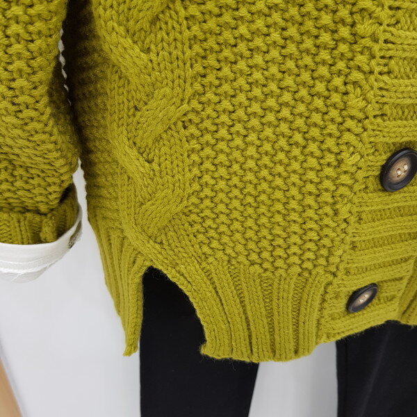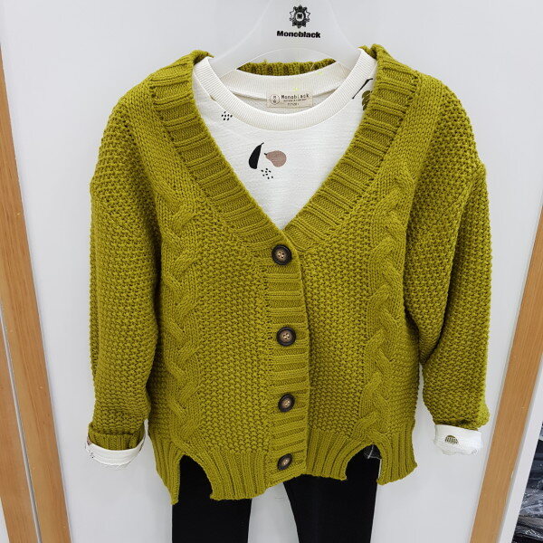 그린색상의 꽈베기장식가디건입니다.
