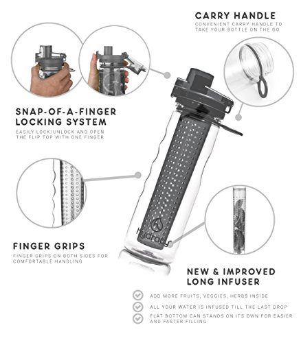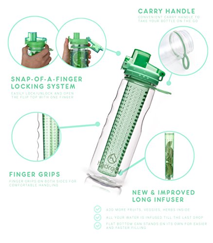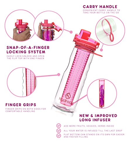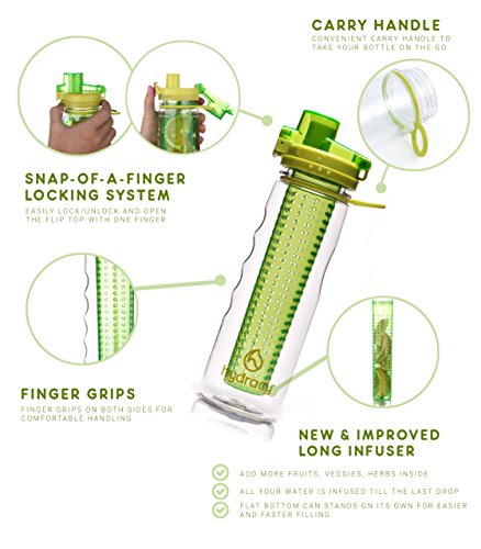Why choosing the Hydracy 25oz bottle is the best gift for your health and your loved ones this year: Boosting fat burning and weight loss, improving the mood, immune and digestive systems, feeling rejuvenated and experiencing increased energy levels,... the benefits of drinking more water are numerous and well documented but too often ignored.At last! Adopting your healthy drinking habit has been made easy and...yummy! Take control of your hydration and create your own natural fruit, veggie and herbs based refreshing detox infused water. Following months of research we came out with the best and unique solution on the market already praised by thousands of happy customers: ? Innovative leak proof locking solution ensuring 100% Seal: spill-proof/no leak guaranteed! ? No-Sweat insulated Cover to keep your bottle DRY Outside and COLD Inside! ? Carry Handle and finger Grips on Both Sides, Fits in Most Car and Bike Holders ? 2-1: use as a striking Stand Alone Water Bottle by simply removing your infuser basket ? Made with FDA Food Grade Tritan 100% BPA Free : safe for you to use over and over and better for the environment ? Complimentary "Starter guide and 25 delicious recipes" eBook and Lifetime GuaranteeEveryday many men, women, adults and kids have fun creating their own delicious recipes. Soon enough, they bring their 25 ounce Hydracy bottle with them everywhere: at school or the office and for any sport and outdoor activities.Click on the BUY Button NOW and get your brand new Hydracy water bottle with Amazon's fast delivery service! 100% Satisfaction Guaranteed - Start feeling Better Day after Day, Hurry, Special Sale Ends Soon! 0 |
