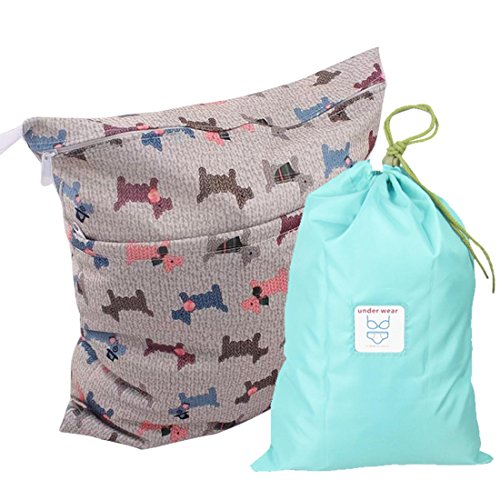 -. Feature : Waterproof 2 in 1 wet bag features two zippered pockets to separate wet and dry items. Great for storing swimsuits, dirty/clean cloth diapers and even cosmetic products / The drawstring bag feature an interchangeable insert card system for easy identification of contents (underwear, shoes, socks, tee, pants, laundry, etc) / Reusable, durable and lightweight. Hand or machine washable and hang dry / Ideal for ladies or mommies on the go / Environmentally friendly, eliminates the use of plastic bags for wet swimsuit or dirty items
