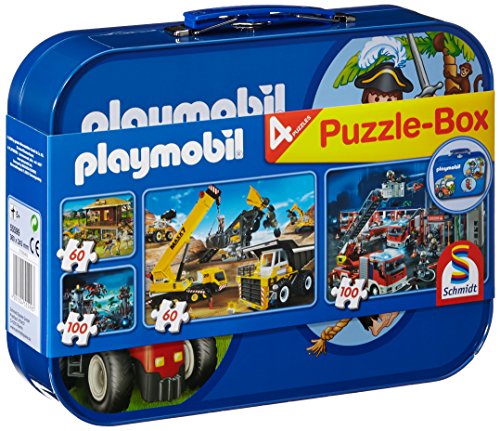-. Title : Schmidt Spiele 55599 - Playmobil, Puzzle-Box 2 x 60, 2 x 100 Teile im Metallkoffer