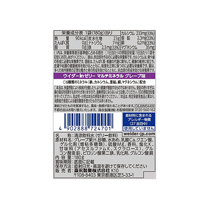 원본상품명: ウイダ?inゼリ? マルチミネラル 180g×6個