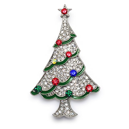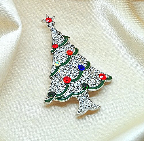 This beautiful brooch features Christmas tree design accented with red, green, blue, AB and clear Rhinestone crystals. Wear this to shine up your evening dress, sash, sleeve, or wrap. Measuring approximately 1.50 inches wide and 2.25 inches tall. Ideal as a Holiday gift. A gift that will definitely be treasured!Feature