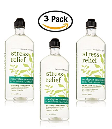 Lot of 3 Bath & Body Works Aromatherapy Stress Relief Eucalyptus Spearmint Body Wash & Foam Bath- 10 fl oz each. A fast foaming body wash infused with essential oils to nourish and soothe your skin while relaxing your senses. Breathe deep to help clear your mind and make it a relaxing experience.Feature
