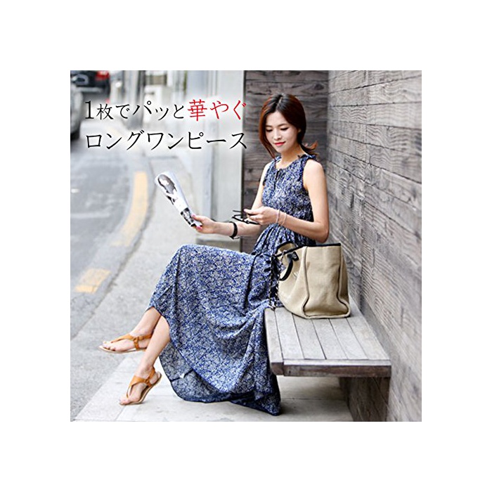 (K 그라《소》)K-grasso+ 꽃무늬 맥시장 노슬리브 원피스 S 블루
