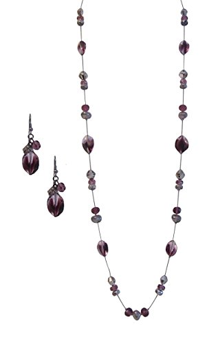 This exquisite matching necklace and earring jewelry set was handcrafted in Europe. This unique long necklace jewelry set is constructed with captivating purple and silvertone Czech glass and crystal beads in a long station design that is both sophisticated and unique. These are the finiest Czech glass crystal beads you will find. This lot was dyed especially for this collection. From our designer collection created exclusively for the particular woman who exudes her passion, creativity and love for fashion in every piece she wears, this necklace and earring set you apart from the crowd.Feature
