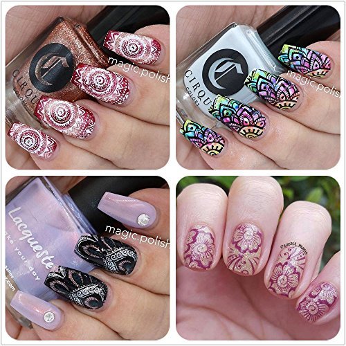 Ejiubas Double-sided Henna Egypt Floral Nail Stamping Plates Nail Art Designs Manicure Set 2 Pcs