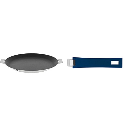 -. Title : Cristel CR30QE Non-Stick Crepe Pan, Silver, 12" with Cristel Mutine Pmaeb Handle, Long, Blue Ink