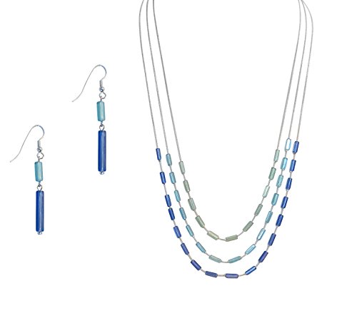 This artisan handcarfted jewelry set is designed exclusively for the particular woman who exudes her passion, creativity and love for fashion in every piece she wears. This exquisite necklace is constructed with captivating blue and green colored accents inspired by the ocean waves in distinct geometric shapes creating a design that is both sophisticated and unique. Inspired by the cool waters of the ocean, this sophisticated jewelry set makes a lovely gift and will arrive in a box appropriate for a special occasion.Feature